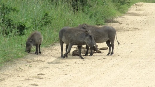 But there is a catch. These warthogs are eating marulas in elephant dung. They’ve gone right through without being digested.